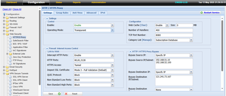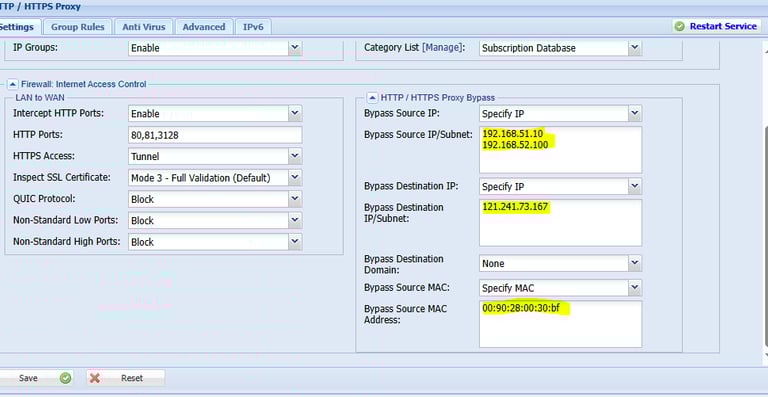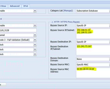 Step 5 : Http/Https proxy bypass > bypass source > Specify IP for eg : 192.168.52.100 the HTTP is bypass