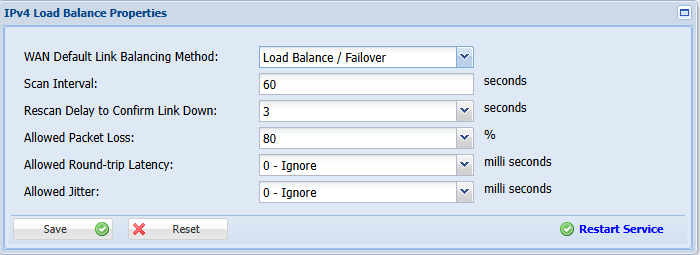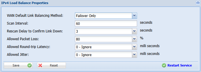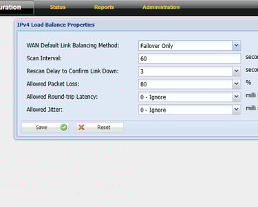 This is the default configuration. If there are multiple WAN interfaces configured, the WAN interface with higher link weight takes higher priority and functions as the primary interface. In the case of a primary interface failure, the secondary interface takes over. This is called the failover mode of operation. In this mode, port forwarding to internal servers will not be automatically switched to the working interface.