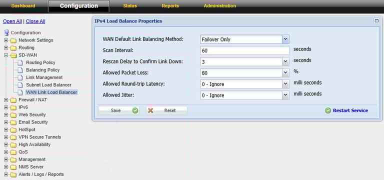Step 2: Click the Configuration > SD-WAN > Wan link Load balance