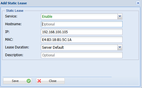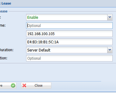 A, Static Lease > it will help to assign the static IP for specific Mac address NOTE: Static IP not in range of DHCP Pool address,