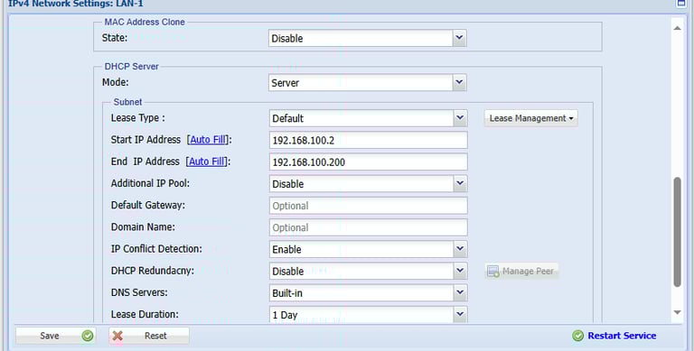 Step 4: Lease type Default and fill the start IP and end IP want to publish