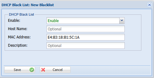 Step 9: Lease Management > Manage Blacklist > open Pop-up windows > Add > provide the Hostname & Mac Details