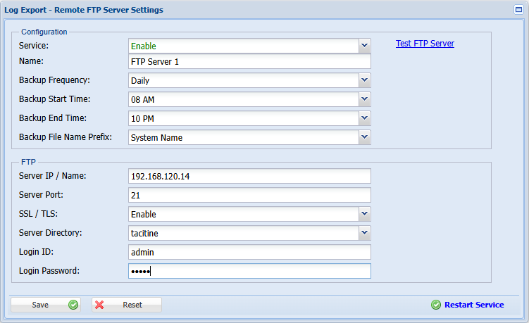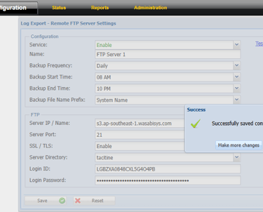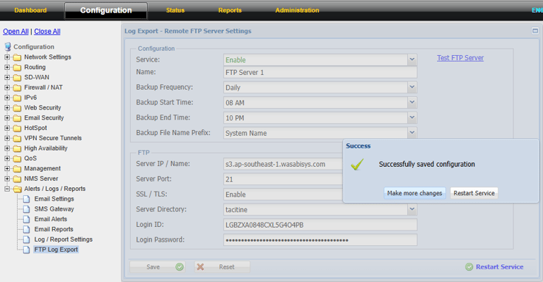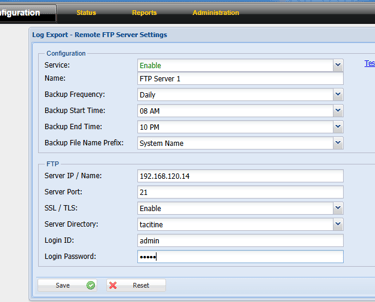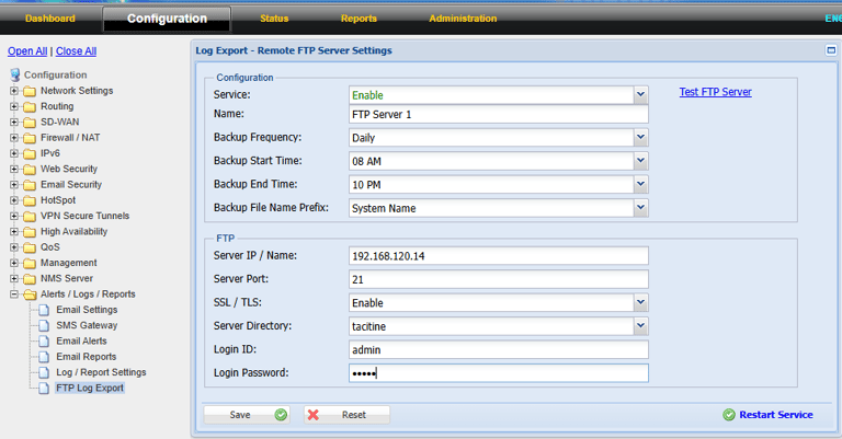 Step 2: Configuration > Alert/Logs/Report > Ftp Log Export > Enable the Services