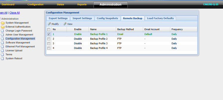 Step 1: Administration > Configure Management > Remote Backup > Enable and mention the Name