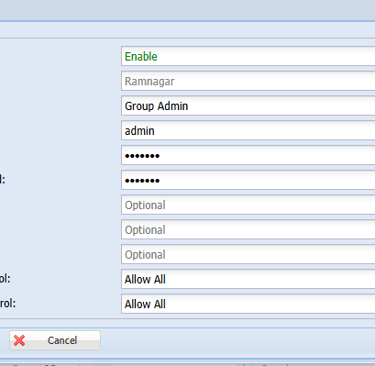 Step 7: Mention the Access Control for ADD User, Modify User, Delete User, Plan Change. Eg: Allow All