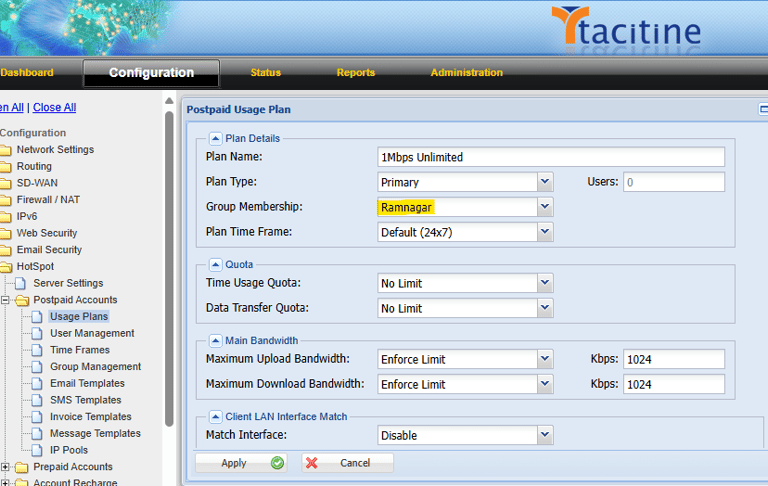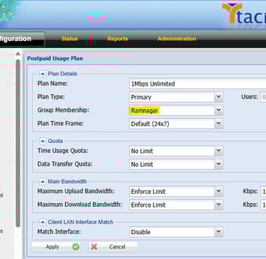 Step 26: Once You Have Created Group Next You Select the Group Membership Under the Usage plans. Eg.Ramnagar. (In this Plan Was Show to the Ramnagar Group users Only)