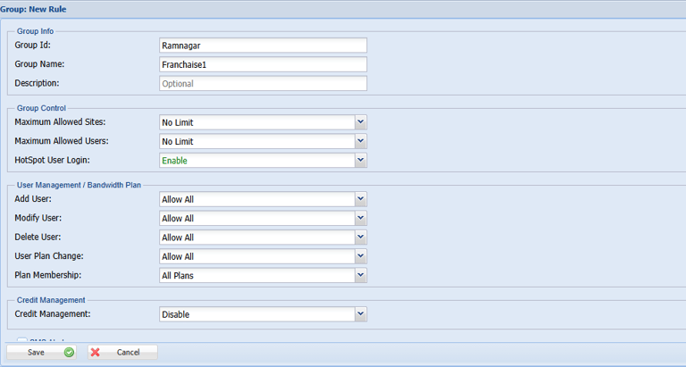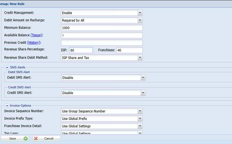 Step 8: Enable the Credit Management top-up the Amount For that Group.