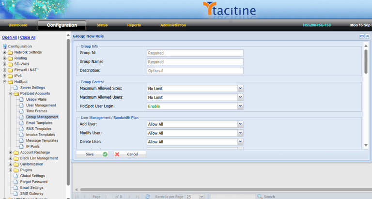 Step 1: Login to the Tacitine. (If you are configuring the Tacitine for the first time, the default Lan IP is https://192.168.100.1:4433)and Default username: admin & Password: admin99