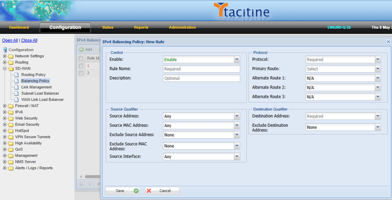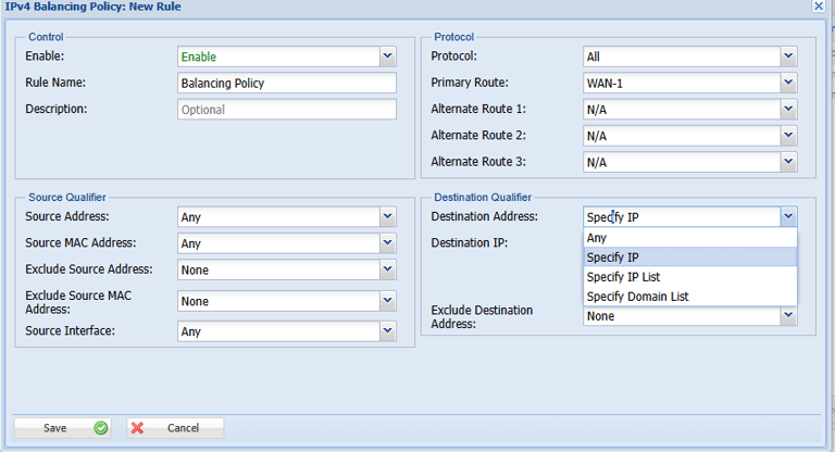 Step 5: In the protocol, you should have all/TCP/UDP and Route via which wan interface traffic flow mention over