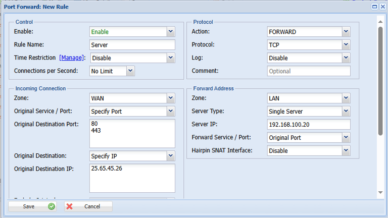 Step 5: Forward Address: This Field specify the Zone / Specify Ip and forward Port: original or specified port