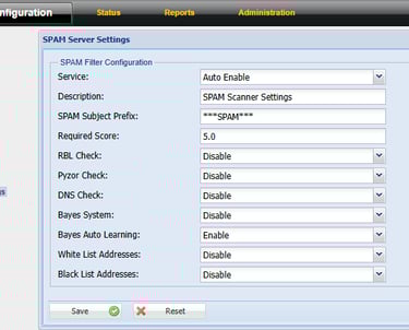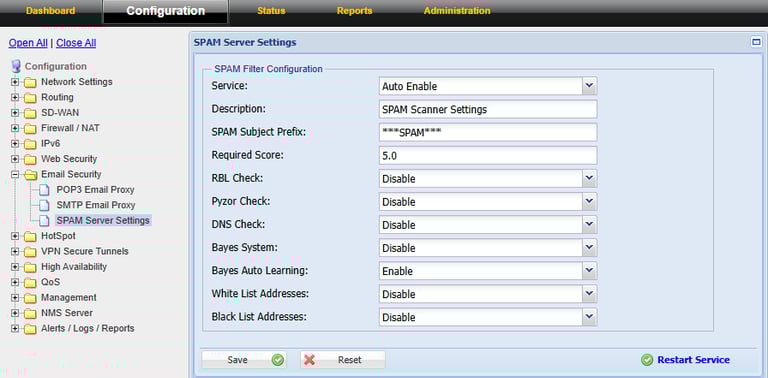 Step 2: Configuration > Email security > SPAM server setting > Enable the services