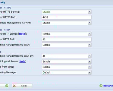 Step 3: You can change the HTTP/HTTPS port number as your option and Enable/Disable the remote management the firewall by wan IP address