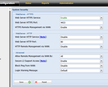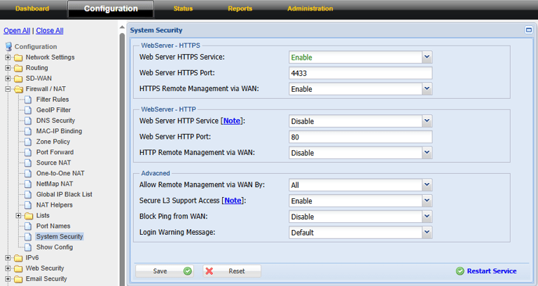Step 2: Click the Configuration > Firewall /NAT >System Security