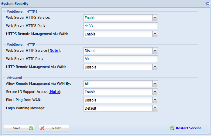 Step 4: Wan IP pinging block through Enable /Disable and login warning message you can assign custom message