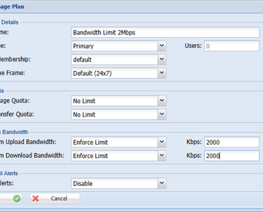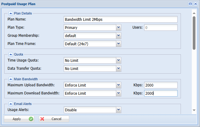 Step 19: Mention the Primary Usage Plan already we have created above otherwise disable it. (Egg: Bandwidth Limit 2Mbps)