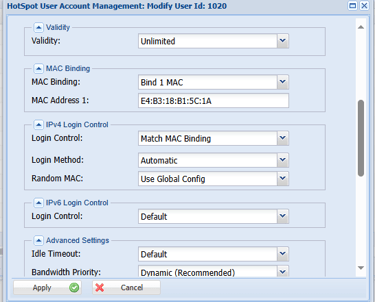 Step 21: If you want to bind mac address it will allow up to 5 mac-address per user. Once mac address is bind next time that user was login automatically.