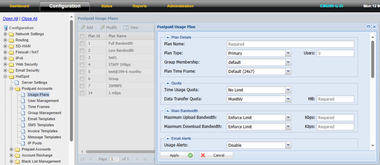 Step 3: Select the Postpaid > Usage Plans > Add