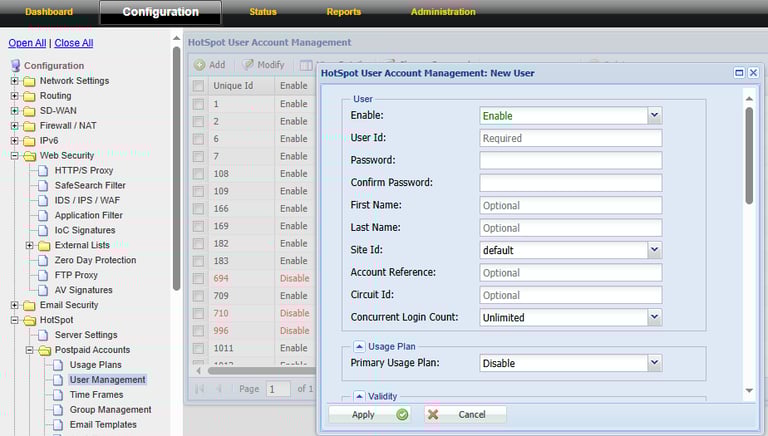 Step 26: Click Apply to save the User Successfully. (Then Connect to the internet give the credential)