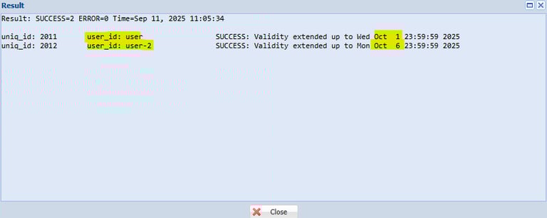 Step 7: Now the User Renewal is successfully completed check it the Result Window