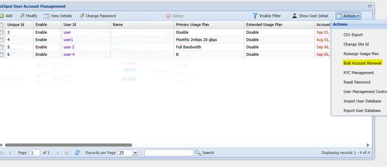 Step 4: Click Actions -> Bulk Account Renewal.