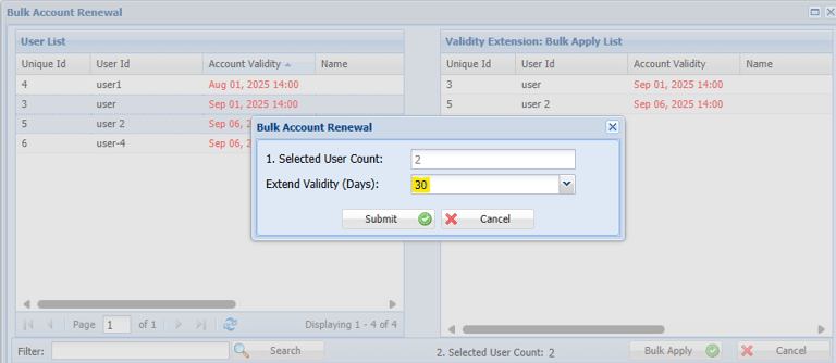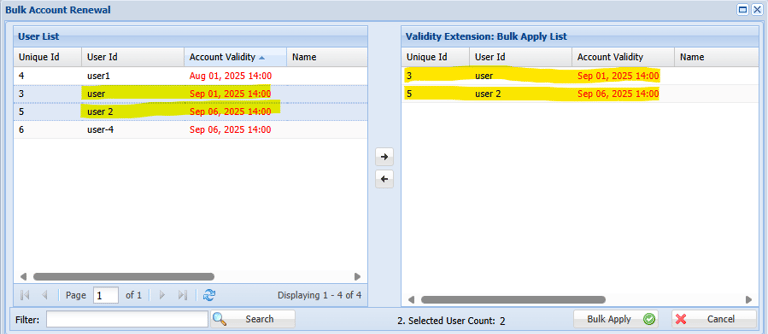 Step 5: Select the User You Want Renew and move to Right side Bulk Apply list Window