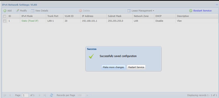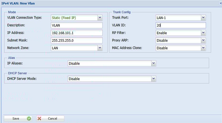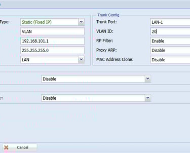 Step 6: Mention the interface which port you want trunk e.g.: trunk Port – Lan-1 and enter the VLAN Id e.g.: VLAN ID: 20