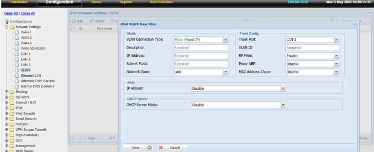 Step 4: Navigate VLAN connection type > static IP and provide details as your requirement