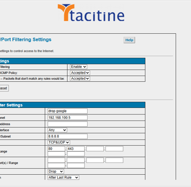 Step 1: Log in to the Tacitine. (If you are configuring the Tacitine for the first time, the default Lan IP is http://192.168.100.1) and default username: admin & Password: admin99