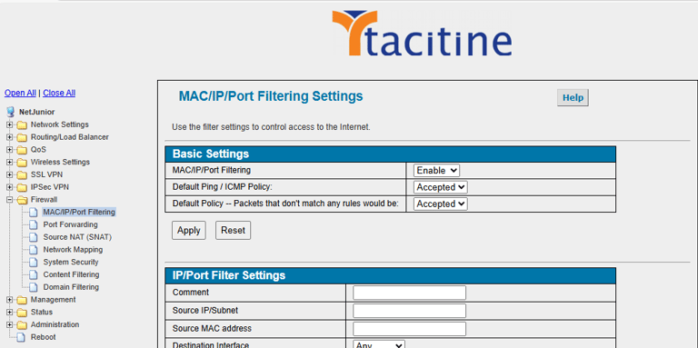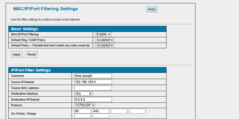 Step 2: Click the Firewall > MAC/IP-Filter Rule