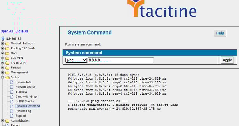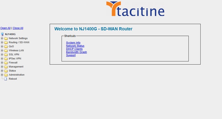 Step 1: Login to the Tacitine. (If you are configuring the Tacitine for the first time, the default Lan IP is http://192.168.100.1)and Default username: admin & Password: admin99